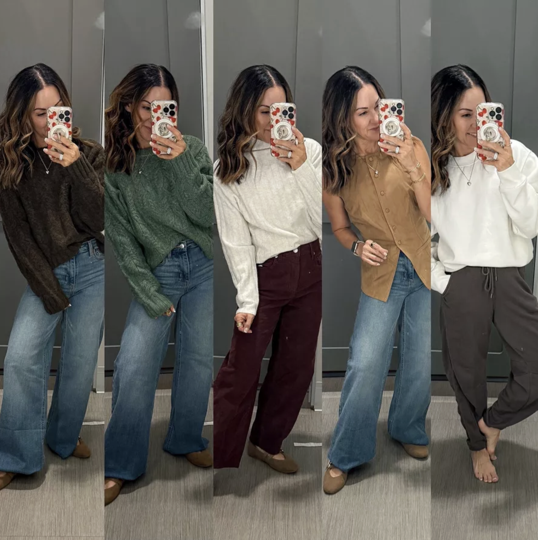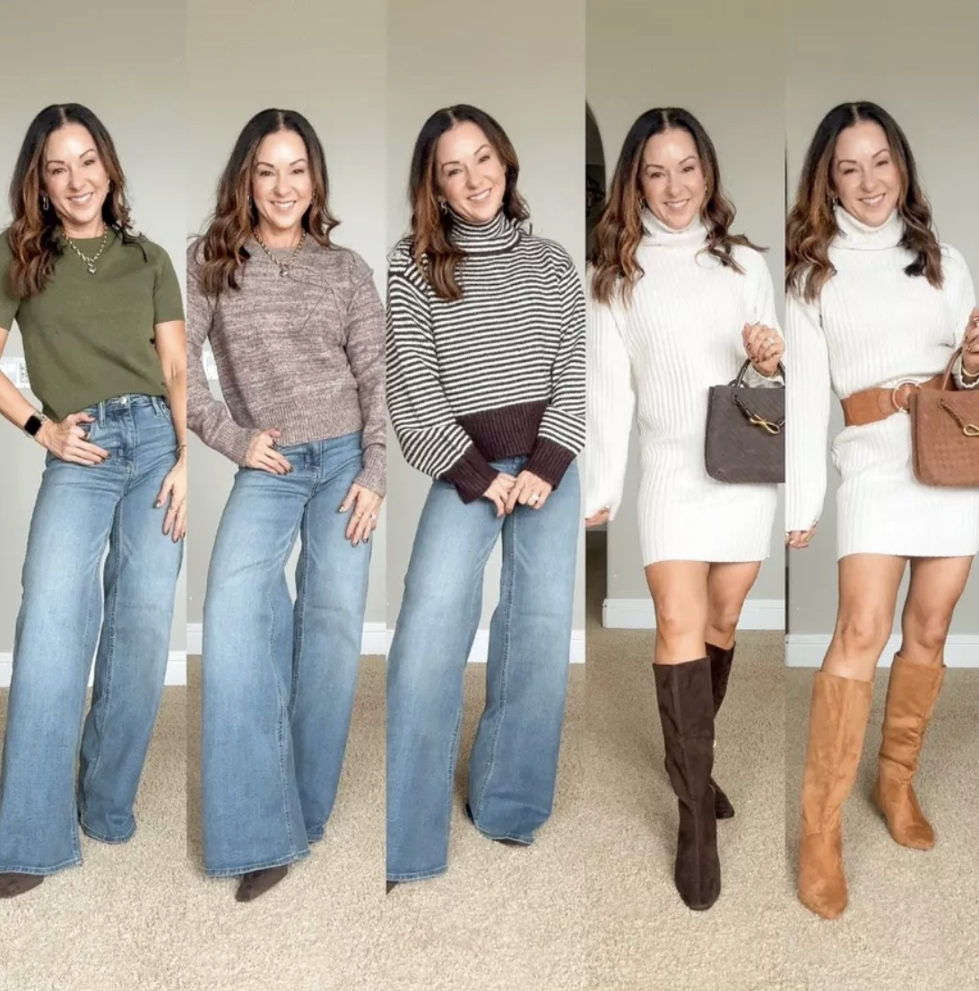Cable Knit Sweater | Short Sleeve Sweater | Sweater Dress | Corduroy Barrel Jeans | Wide Leg Jeans | Corduroy Wide Leg Pants | Barrel Leg Sweatpants | Bow Sweater | Sneakers | Plush Half-Zip Pullover