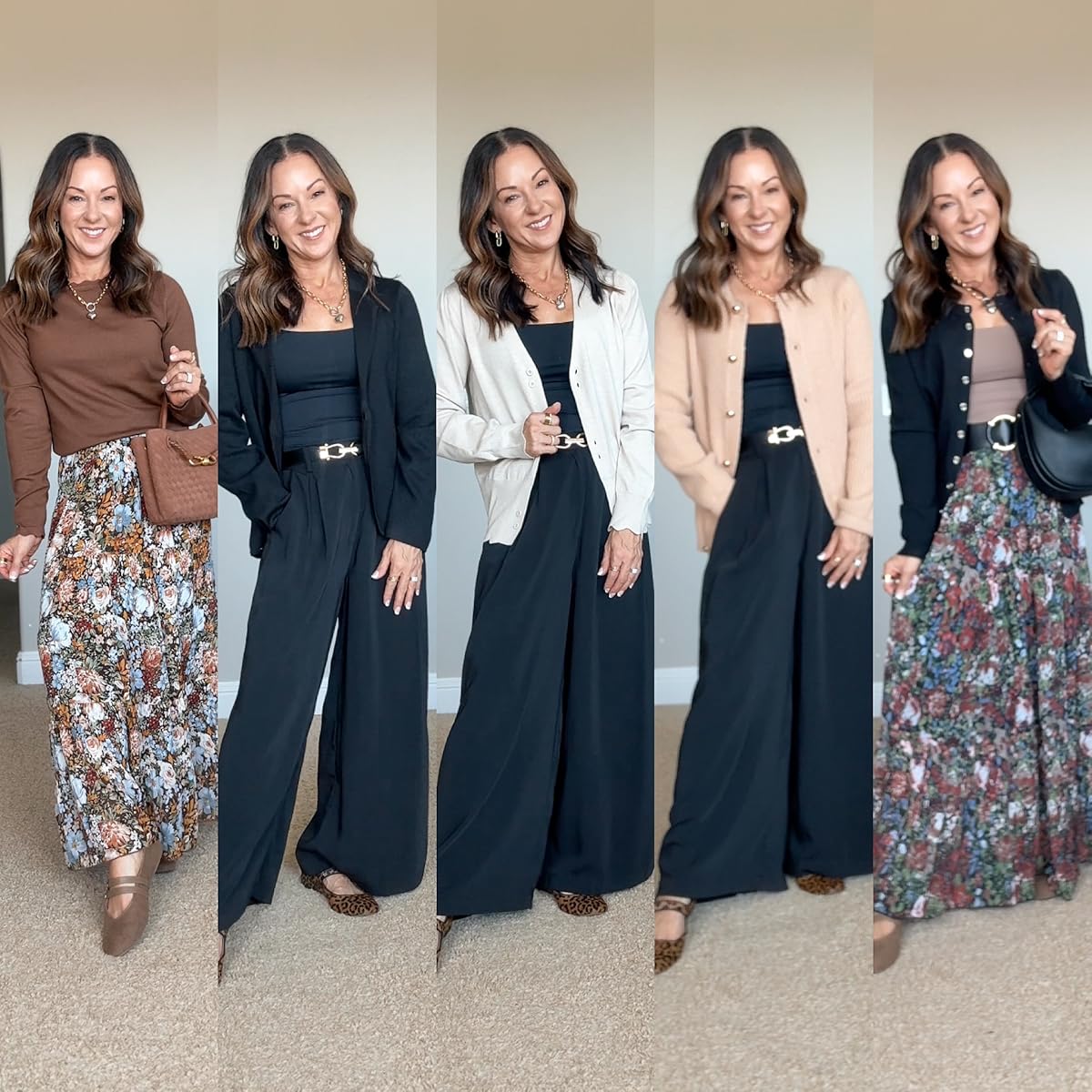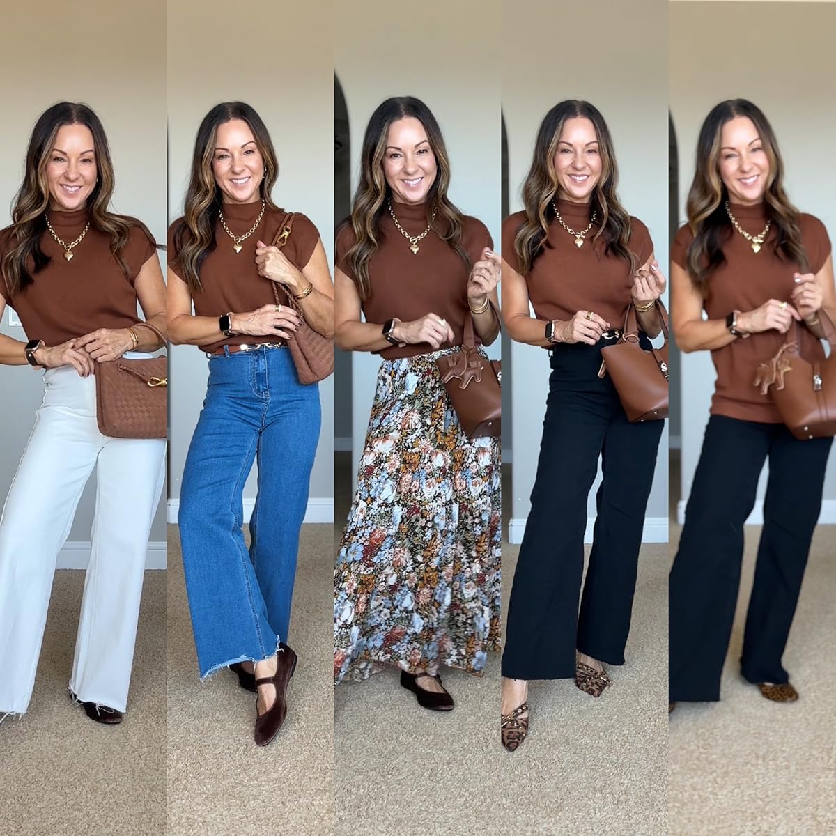 - Elastic Skinny Belts 2. Maxi Skirt 3. Elastic Wide Belts 4. Mock Neck Short Sleeve Sweater 5. Wide Leg Yoga Pants 6. Wide Leg Jeans 7. Puff Short Sleeve Sweater 8. 3/4 Sleeve Shirt 9. Midi Dress 10. Loose Yoga Pants