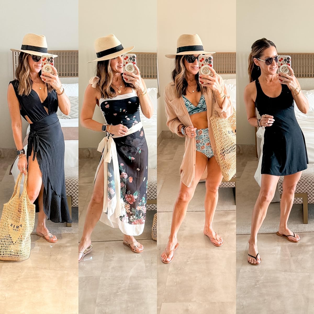 If you have a warm-weather getaway on the calendar, this post is for you. I pulled together all of my favorite resort wear pieces that are easy to pack, flattering, and effortless to style from the pool to dinner. Think chic one pieces, breezy dresses, lightweight sets, and the perfect neutral sandals to tie it all together. Every look is comfortable, versatile, and designed to mix and match so you can pack lighter without sacrificing style. These are the pieces I would reach for on a beach trip, cruise, or any sunshine filled escape.